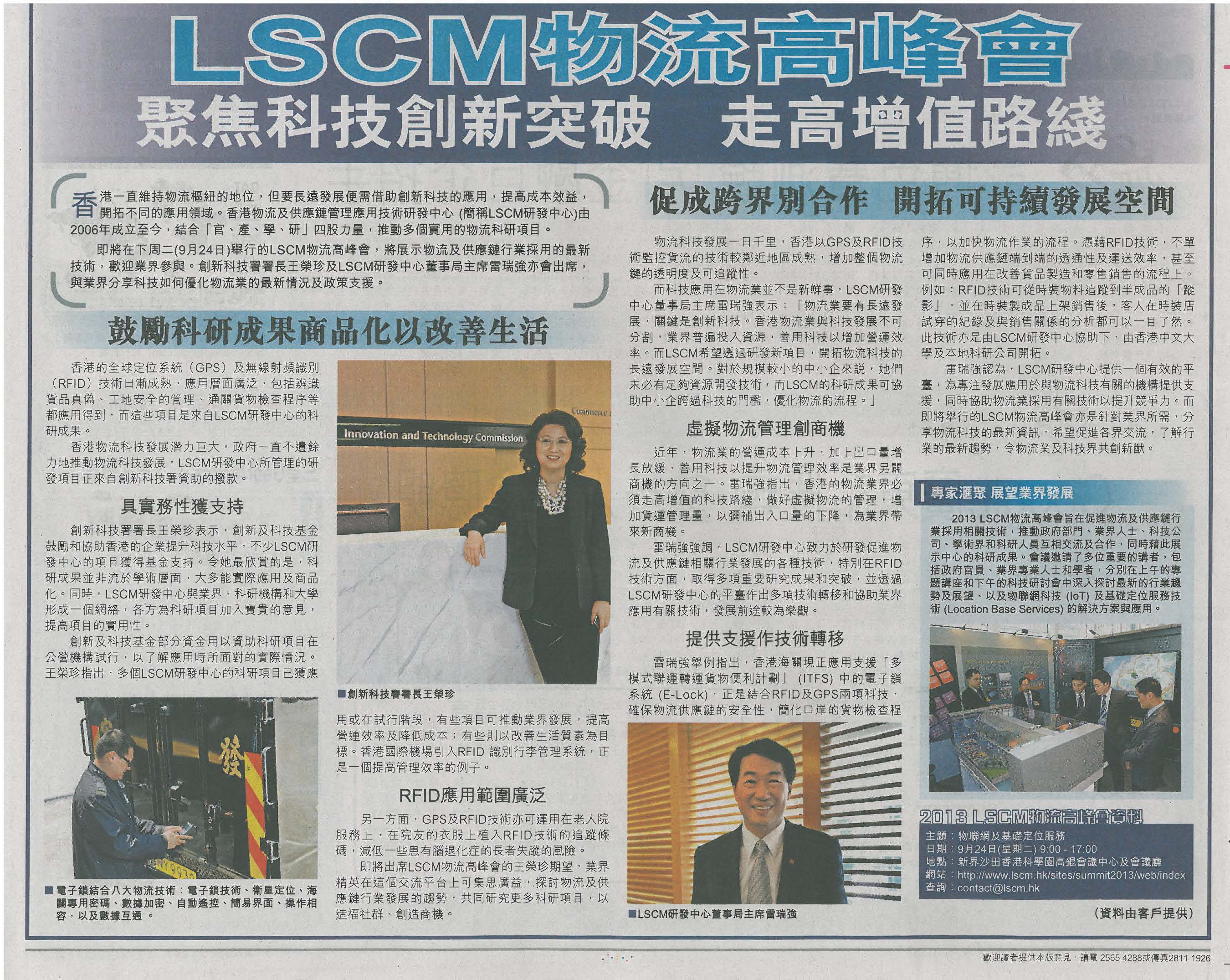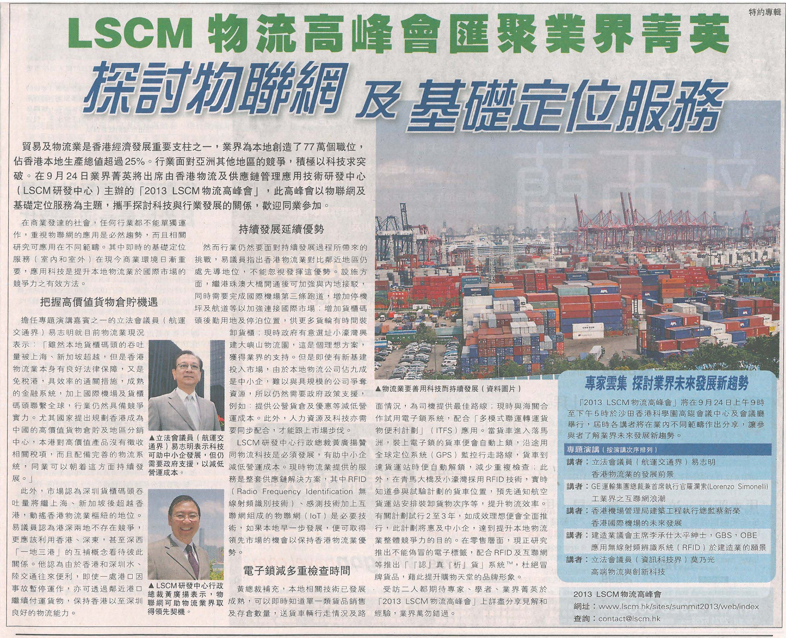 | 2013年09月19日 | LSCM物流高峰會聚焦科技創新突破 走高增值路綫 | 香港經濟日報 |
