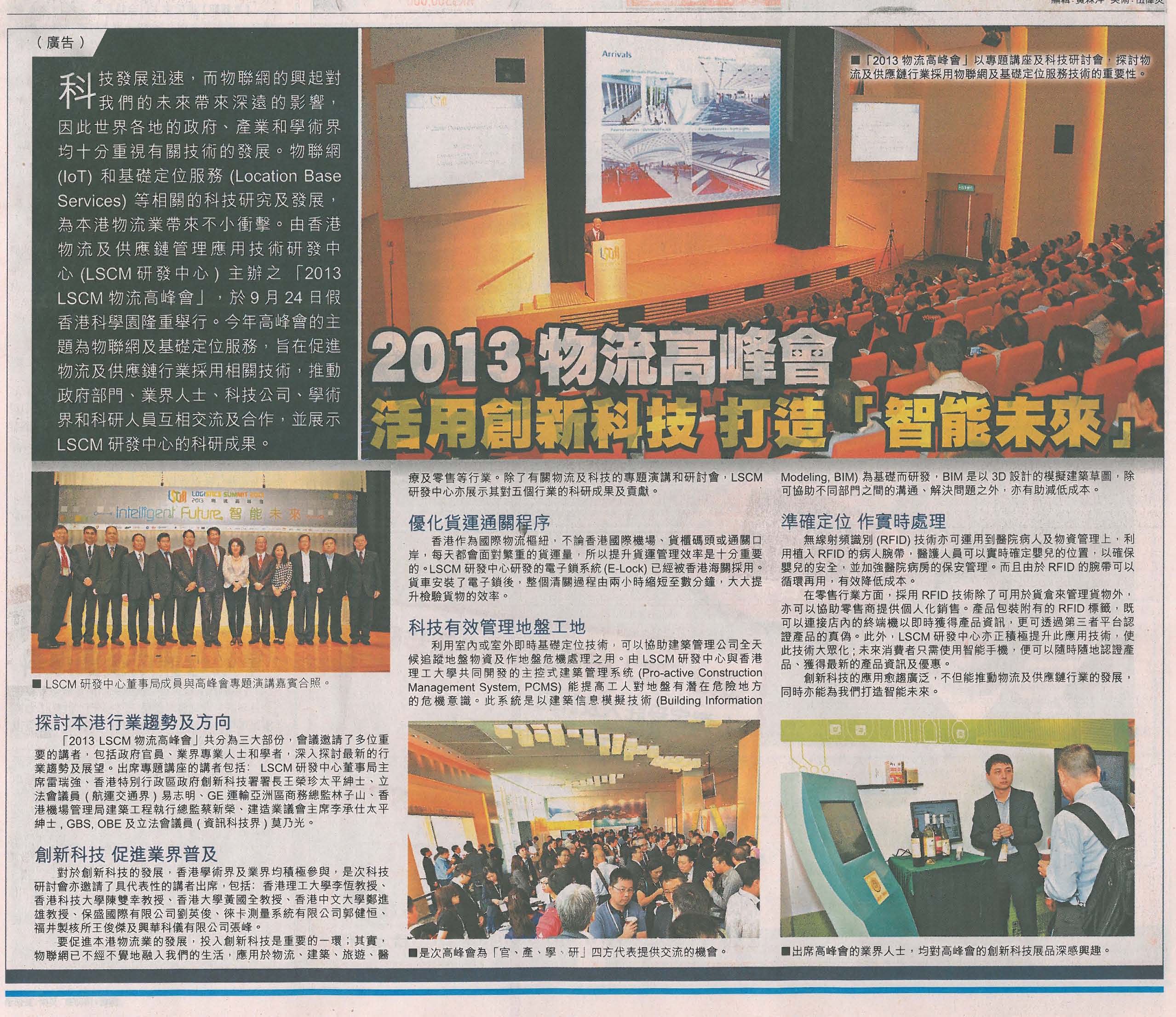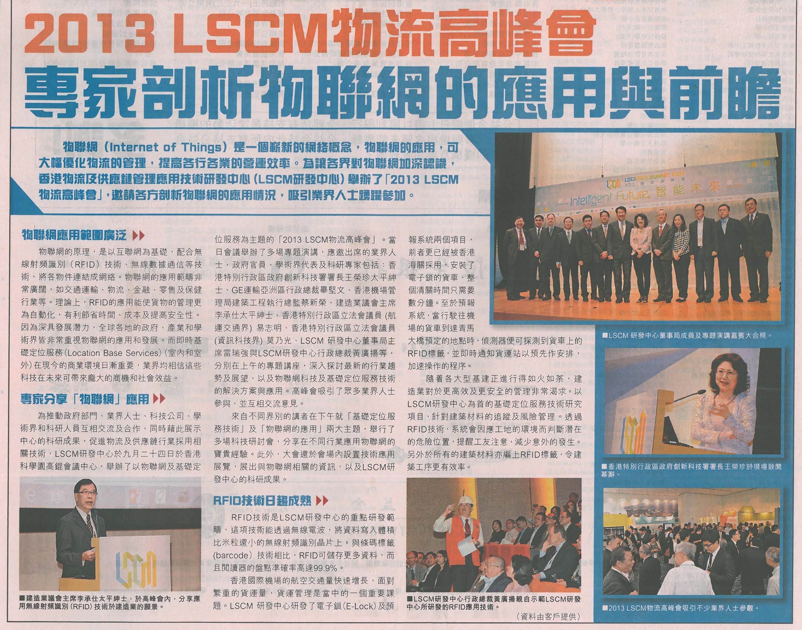 | 2013年09月27日 | 2013 LSCM物流高峰會 專家剖析物聯網的應用與前瞻 | 星島日報 |