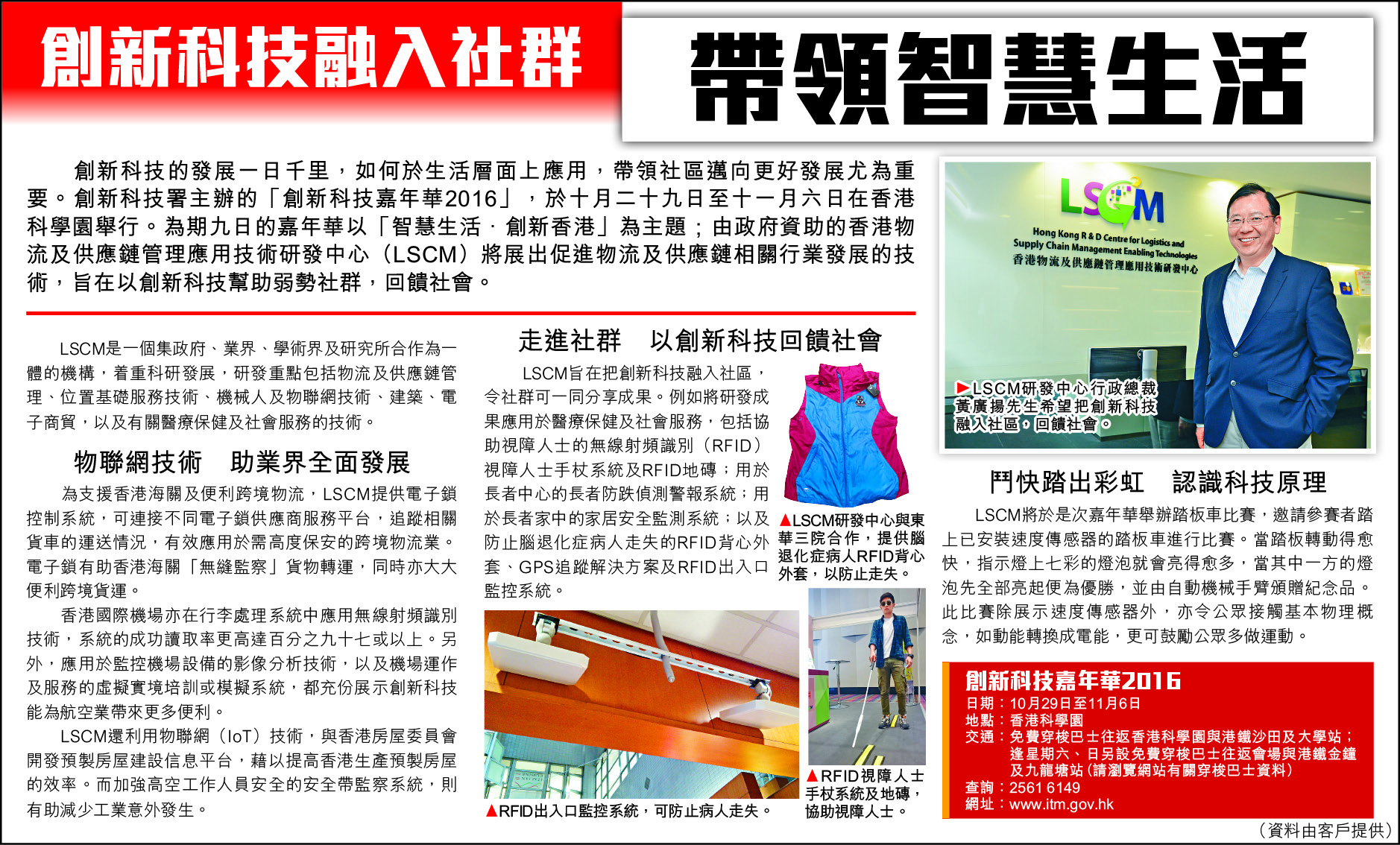 2016年10月28日 創新科技融入社群 帶領智慧生活 頭條日報
