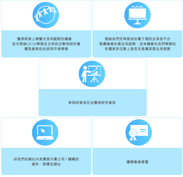 我們的會籍計劃為不同行業的技術領袖以及優秀的研究人員提供聯繫交流的機會。此外,會員可參與各項活動,獲得技術專業知識及研究資源,掌握無限商機。LSCM 會根據會員的業務性質和需求、為會員提供一個卓越平台,以便開展市場推廣、發展業務和採用創新技術,及邁向更專業的發展。免費登記成為會員後,會員可享永久豁免年費優惠。我們誠邀您加入成為我們的會員,以便使用我們的服務。