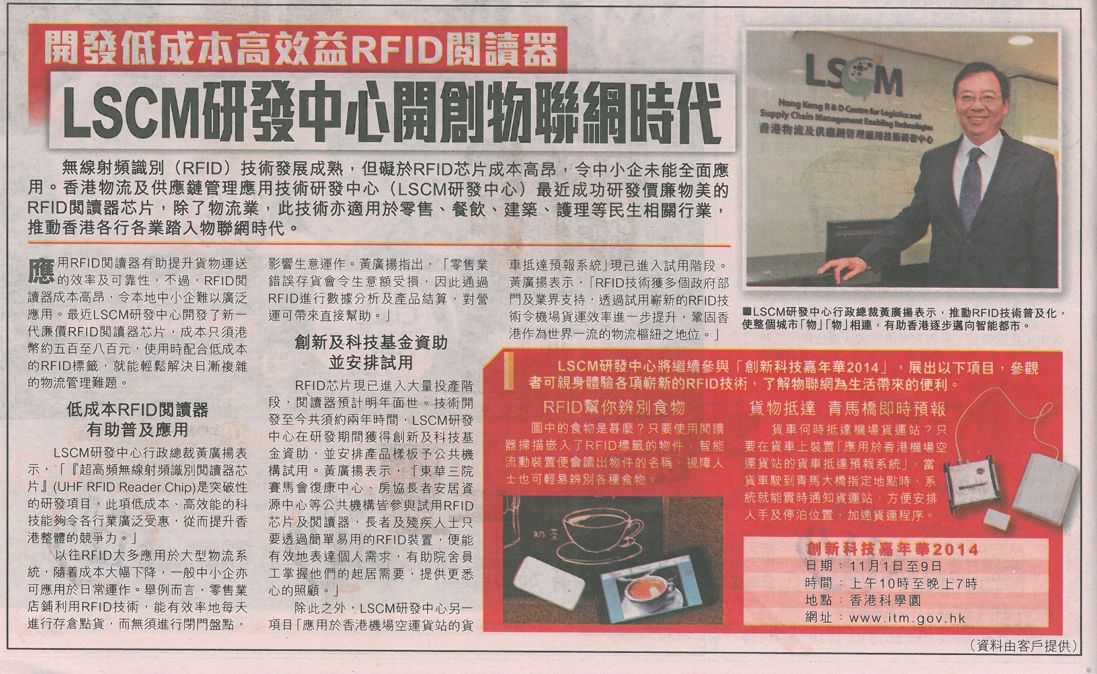 2014年09月11日 探索创新科技新路向物流及供应链管理业前瞻物联网世代庞大商机 香港经济日报