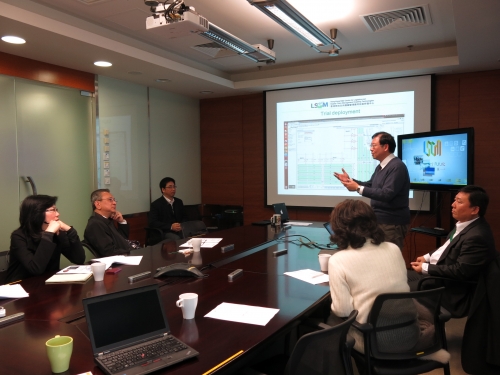 黄广扬先生为两位贵宾讲解LSCM研发中心的发展及研发成果
