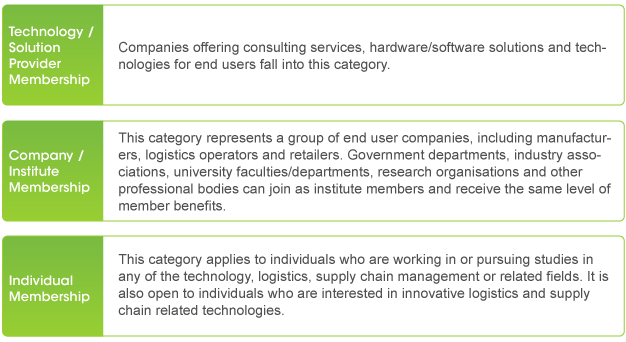 Three membership types are designed for individuals and organisations interested in innovative logistics and supply chain related technologies.